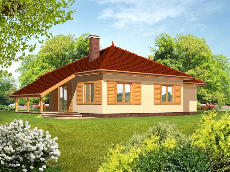 Dom drewniany jednorodzinny, szkielet drewniany parterowy z nieużytkowym poddaszem, niepodpiwniczony, przeznaczony dla 3 osobowej rodziny. Dom podzielony jest na dwie strefy: dzienną i nocną. Strefa dzienna to hol, pokój dzienny z kominkiem, kuchnia, natomiast część nocna to dwie sypialnie z łazienką.