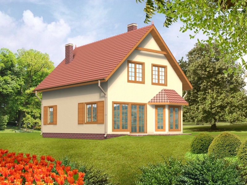 Dom jednorodzinny, parterowy z użytkowym poddaszem. Wygodny budynek dla 4-5-cio osobowej rodziny. Dom podzielony jest na dwie strefy: dzienną i nocną. Strefa dzienna na parterze to sień, korytarz, salon, kuchnia, pokój, łazienka, pomieszczenie gospodarcze, natomiast część nocna to trzy sypialnie, łazienka, garderoba.